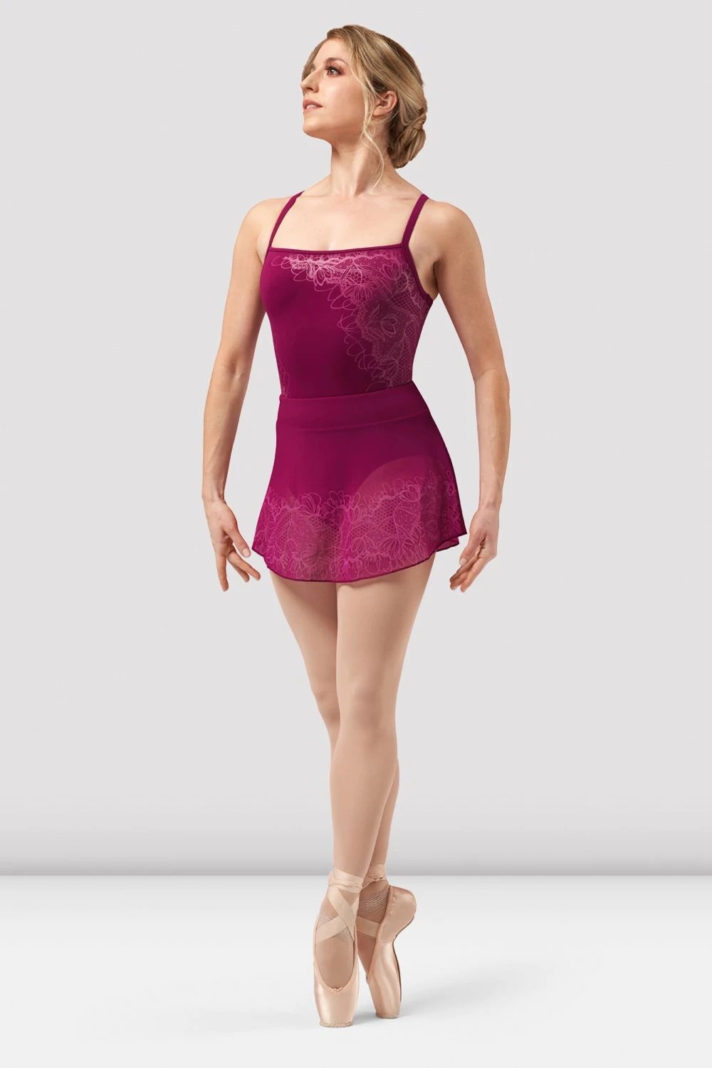Our Ladies Asher Pull On Skirt features an elasticated waistband and printed lace design. Part of our BLOCH Lace collection featuring delicate lace prints, mesh detailing and beautifully cut silhouettes. This collection boasts elegance, available in a trio of rich tones.