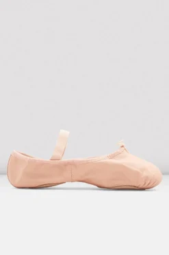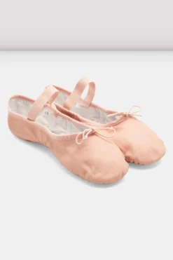This leather split sole features a satin neoprene arch and heel to contour to the foot and allow for extra length. An introductory leather ballet shoe featuring stitched oval split-sole pads which create extra support.
